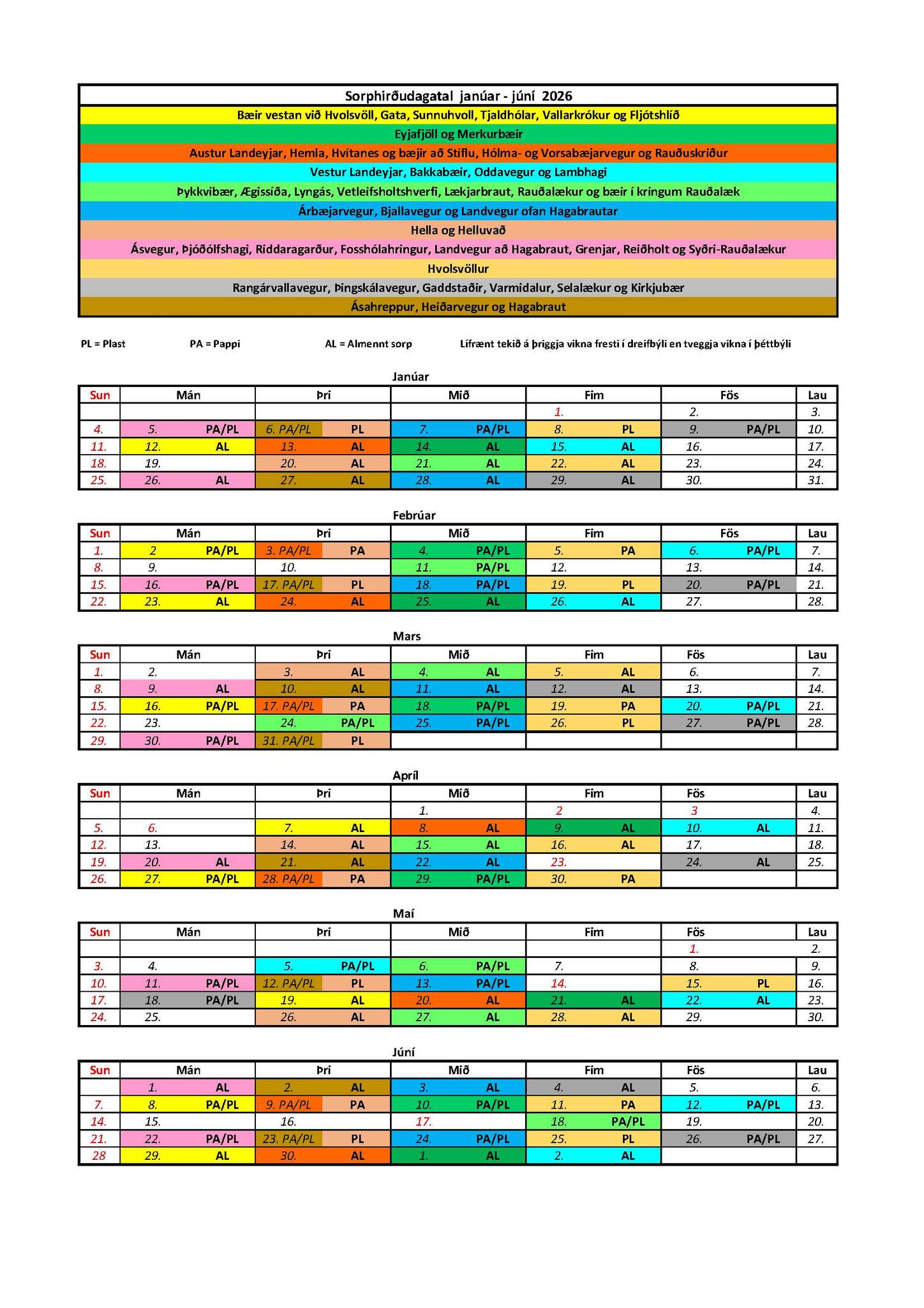 Við biðjum íbúa að huga vel að dagsetningum til að tryggja að tæming gangi greiðlega fyrir sig.