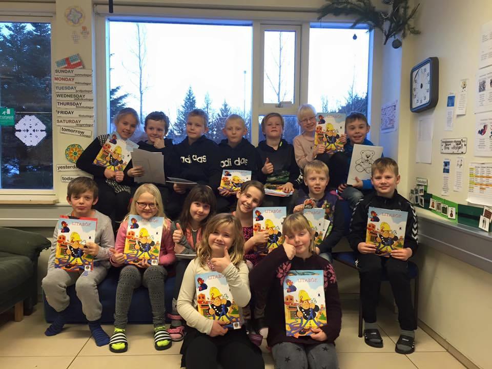 Hver nemandi var svo leystur út með gjöfum, meðal annars myndskreytta sögu um slökkviálfana Loga og Glóð og vasaljós. Nemendur svara svo spurningum upp úr sögunni. Svörin við spurningunum verða svo send í samkeppni á vegum LSS í von um að verða dregin út. Erla Berglind Sigurðardóttir frá Hvolsskóla var með nemendum og sá um að allir lærðu vel um eldvarnir og Loga og Glóð.